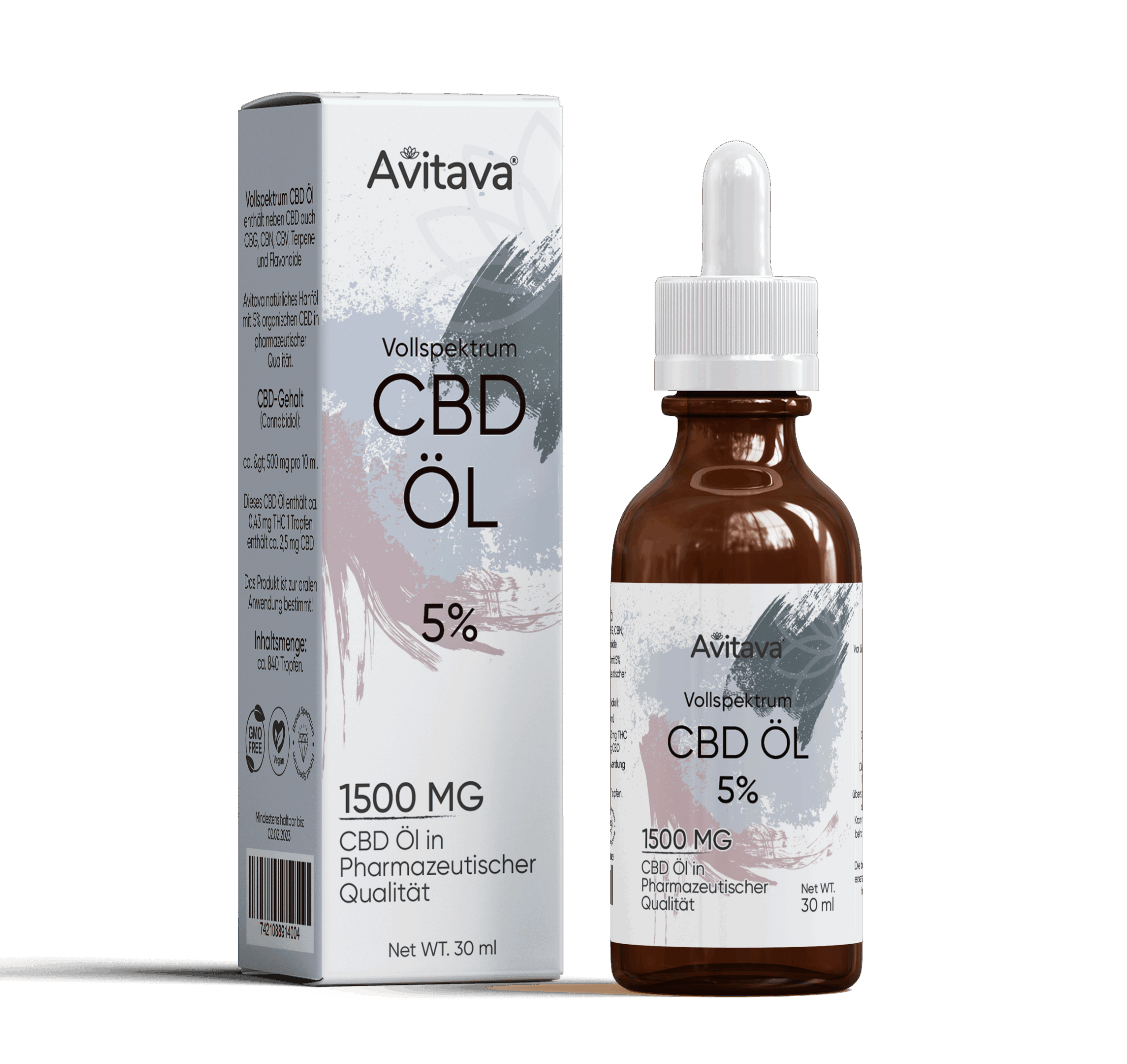 Avitava 5% CBD Öl im Vollspektrum enthält Terpene und Cannabinoide CBN, CBV, CBG, CBC 30 ml