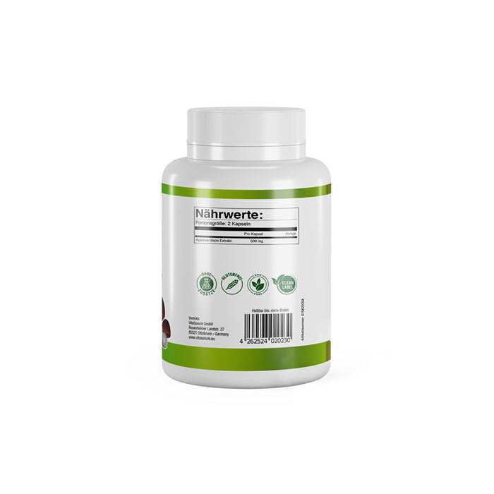 Agaricus blazei-Extrakt (Polysaccharidanteil ≥ 30 %), Kapselhülle: Hydroxypropylmethylcellulose (HPMC)