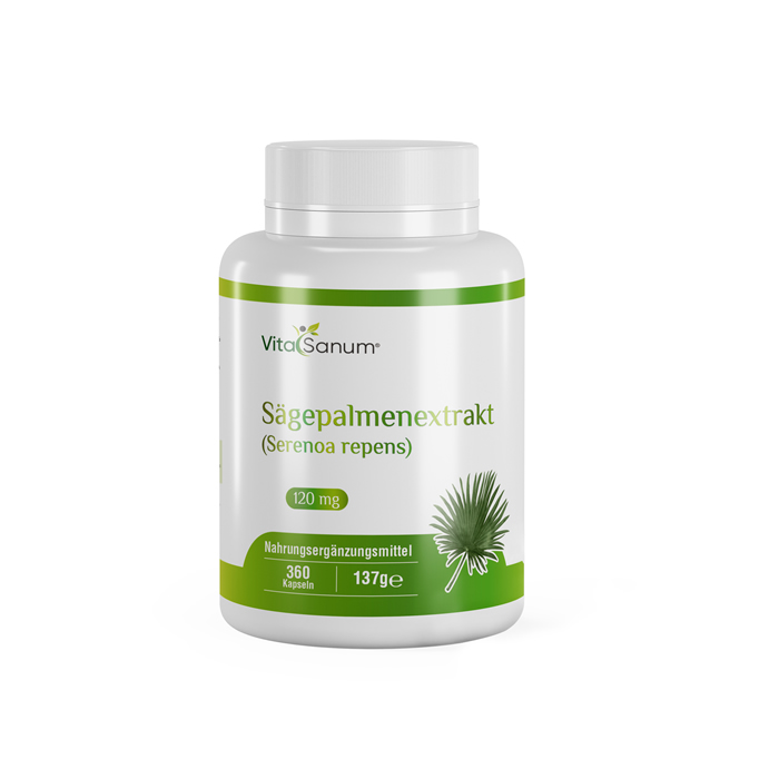 VitaSanum® Sägepalmenextrakt, gewonnen aus den Früchten der Sägepalme (Serenoa repens), wird häufig als Nahrungsergänzungsmittel eingesetzt. Hier sind einige potenzielle Vorteile von Sägepalmenextrakt: